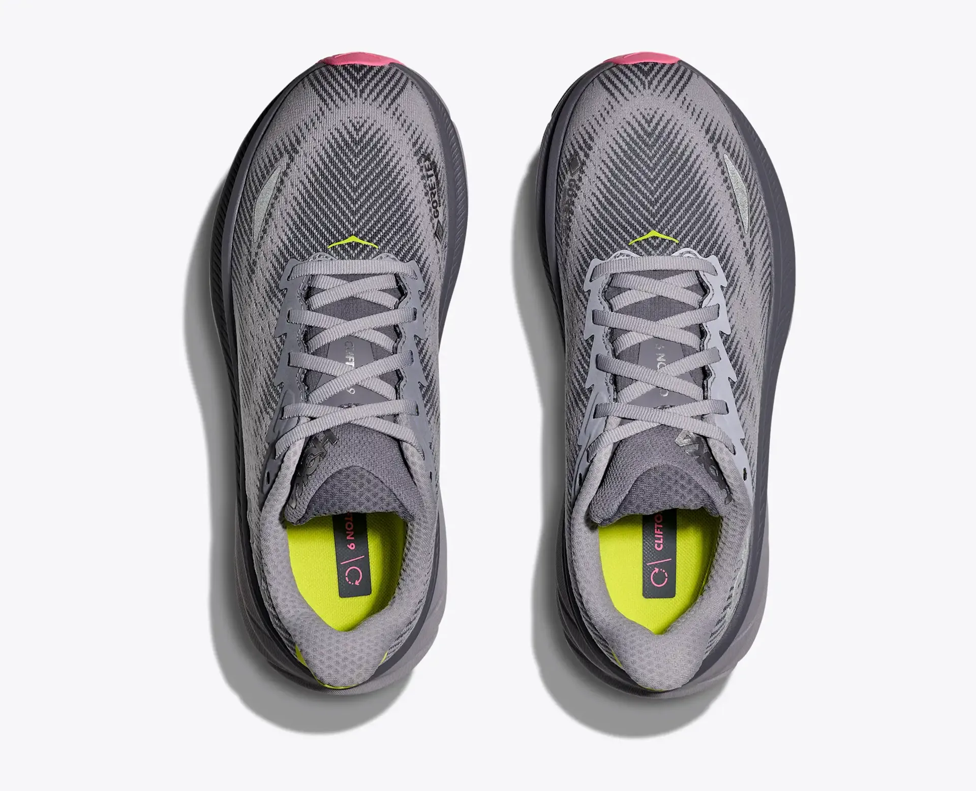 Question(s) asked regarding Hoka Women's Clifton 9 Gore-Tex Running Shoes in Grey Skies / Foggy Grey